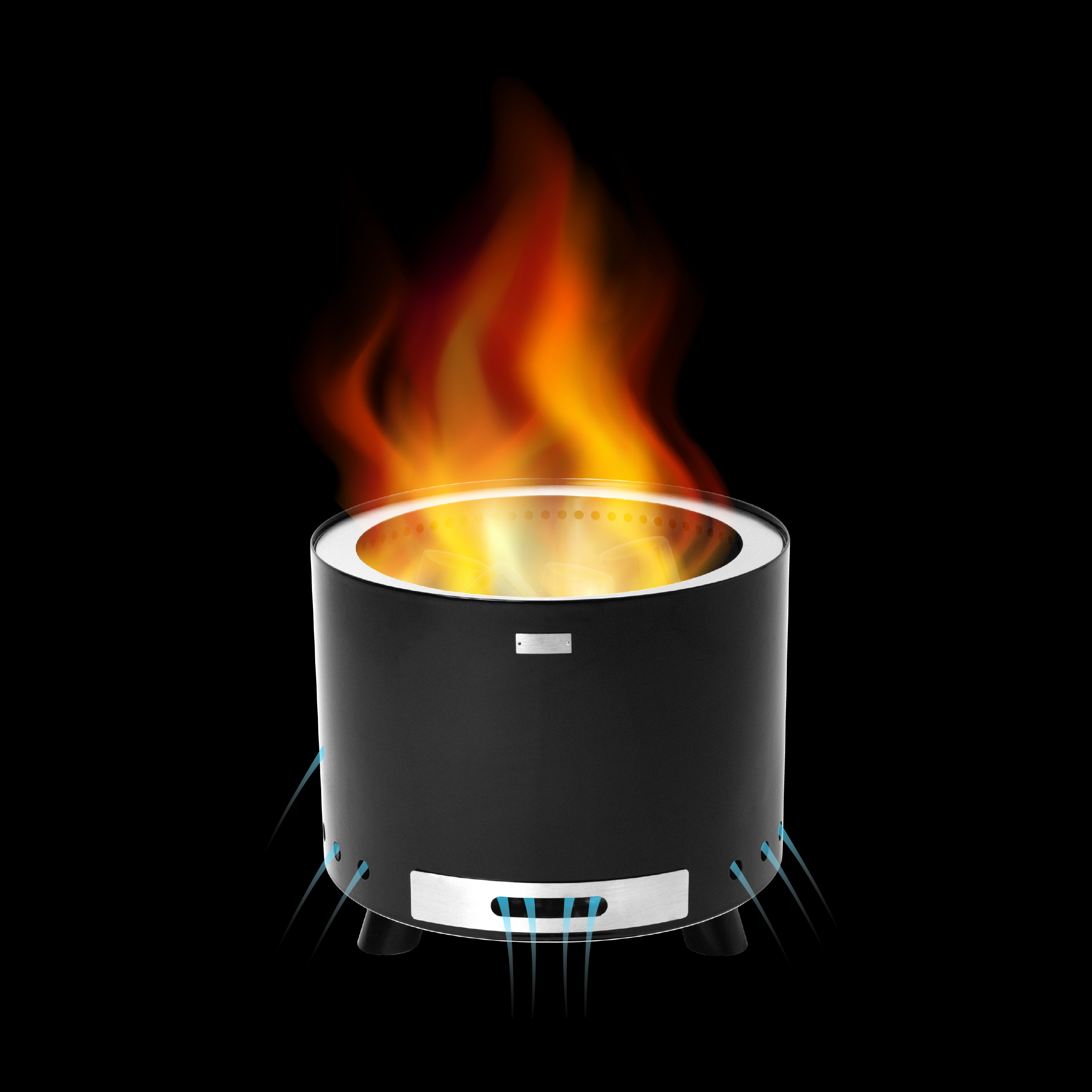 • Les coques intérieure et extérieure sont chauffées par le feu, ce qui fait monter l’air entre les parois.