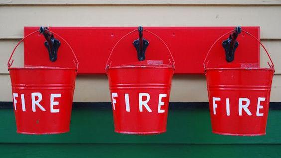 Halte immer einen Feuerlöscher, Wassereimer oder Sand in der Nähe, um das Feuer im Notfall schnell löschen zu können.
