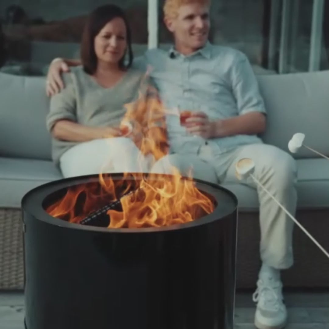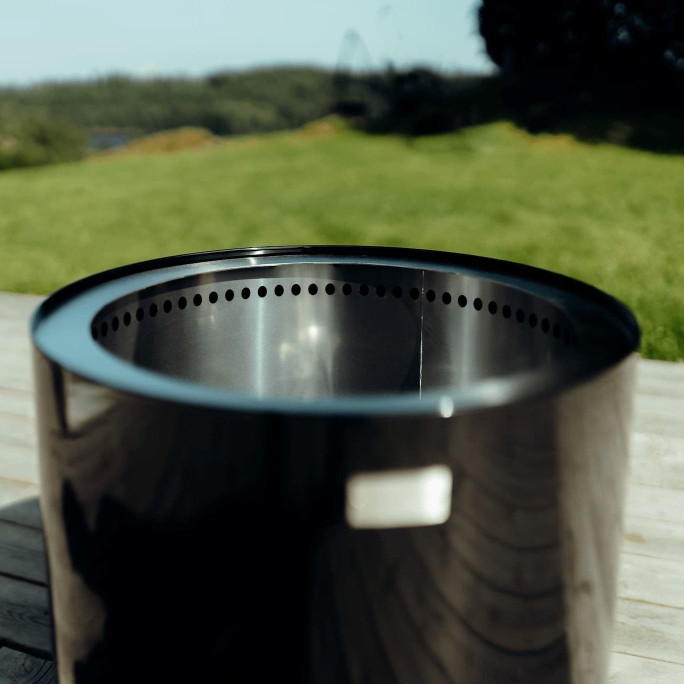 Nos bols à feu sont pratiquement sans fumée, ce qui signifie qu'ils produisent beaucoup moins de fumée que les foyers conventionnels. La technologie à double paroi et la combustion secondaire garantissent que même les plus petites particules de bois sont brûlées efficacement, minimisant ainsi le développement de fumée.