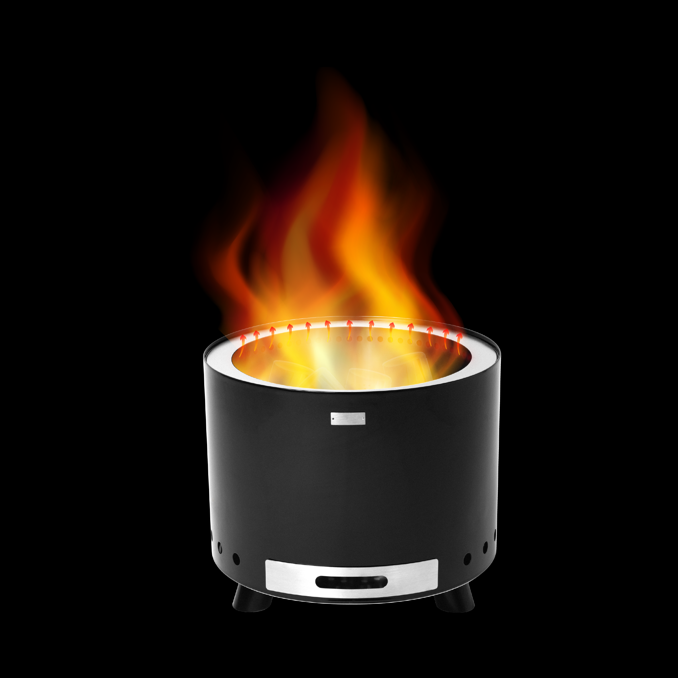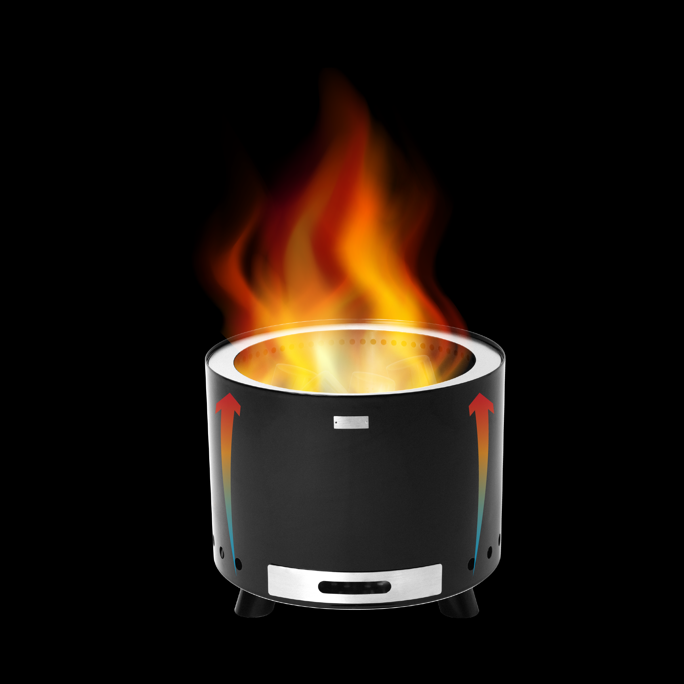Lucht komt binnen in een holle ruimte aan de onderkant van de vuurschaal en gaat de dubbele wand in. De binnen- en buitenschaal worden door het vuur verwarmd, waardoor de lucht tussen de wanden opstijgt.